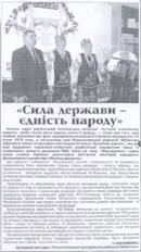 Кононенко,Н. «Сила держави – єдність народу»:(масовий захід в районній б-ці до дня Соборності України)/Н.Кононенко//Решетилівський вісник. – 2011. – 4 лют. – С.2. |
