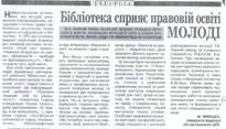 Яресько, М. Бібліотека сприяє правовій освіті молоді // Решетилівський вісник. – 2011. – 25 лист. – С.8. |
