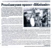 Денисенко, Н. Реалізовуємо проект «Бібліоміст» / Н. Денисенко // Решетилівський вісник. – 2011. – 4 березня.- с. 4. |