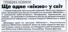 Ще одне «вікно» у світ // Решетилівський вісник. – 2011. – 25 листопада. – с. 1. /бібліоміст/ |